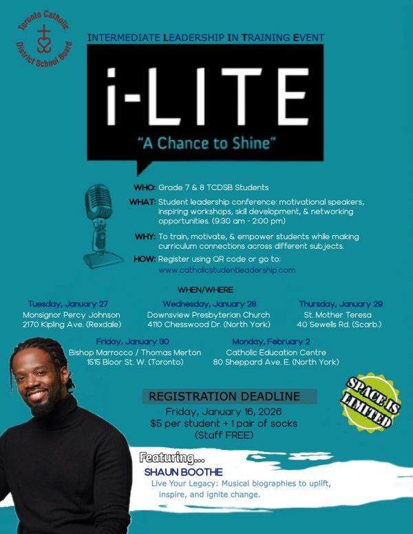 [REGISTER NOW] [VOLUNTEER SIGN UP][PERMISSION FORMS] [TALENT SHOW SIGN UP] WHAT Intermediate Leaders In Training EventElementary Catholic Student Leadership Conference like no other! Keynote Speaker, workshops, talent show, interactive prayer service. 9:30 am to 2:00 pm. REGISTER NOW REGISTER NOW WHEN / WHERE (5 dates) Tues. Jan. 27 โ WEST: Monsignor Percy Johnson (2170 Kipling Avenue, Rexdale)Wed. Jan. 28... Continue Reading →