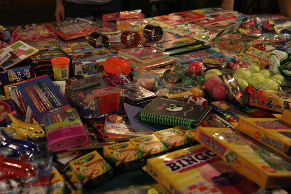 It was a indescribable feeling seeing all of your gifts on the table.  We never realized how many gifts (books, soccer balls, watches, games, stationary, puzzles, lego, toys, Angry Birds, etc.) we were actually giving.