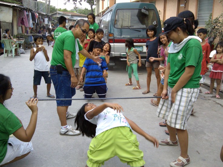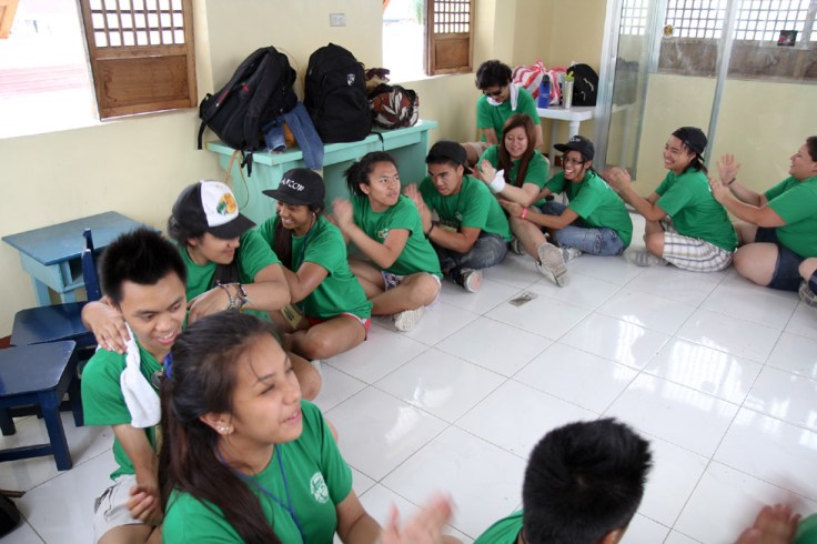 The hard day’s work plastering and mixing really made our backs and shoulders sore so we created the massage train.