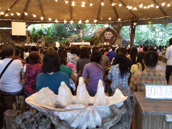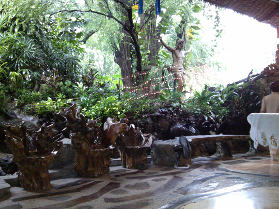Also known as the “Nature’s Church”All chairs are made out of tree stumpsAltar chairs also made out of finely carved woodYou can’t tell from this picture but it was actually pouring ran during entire mass