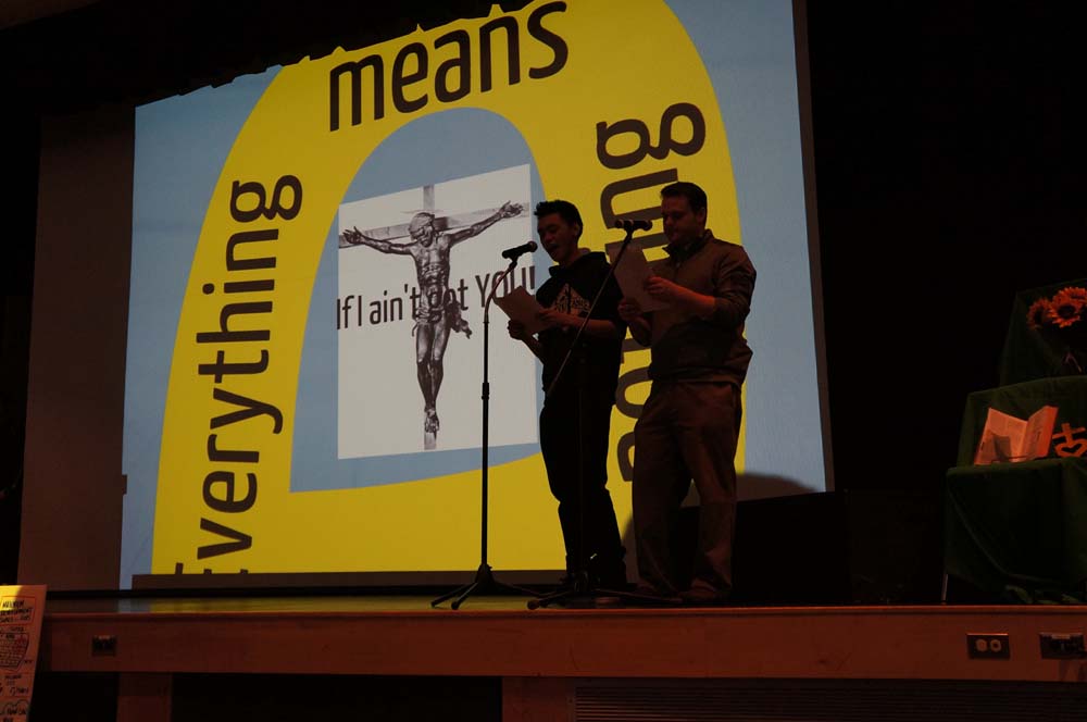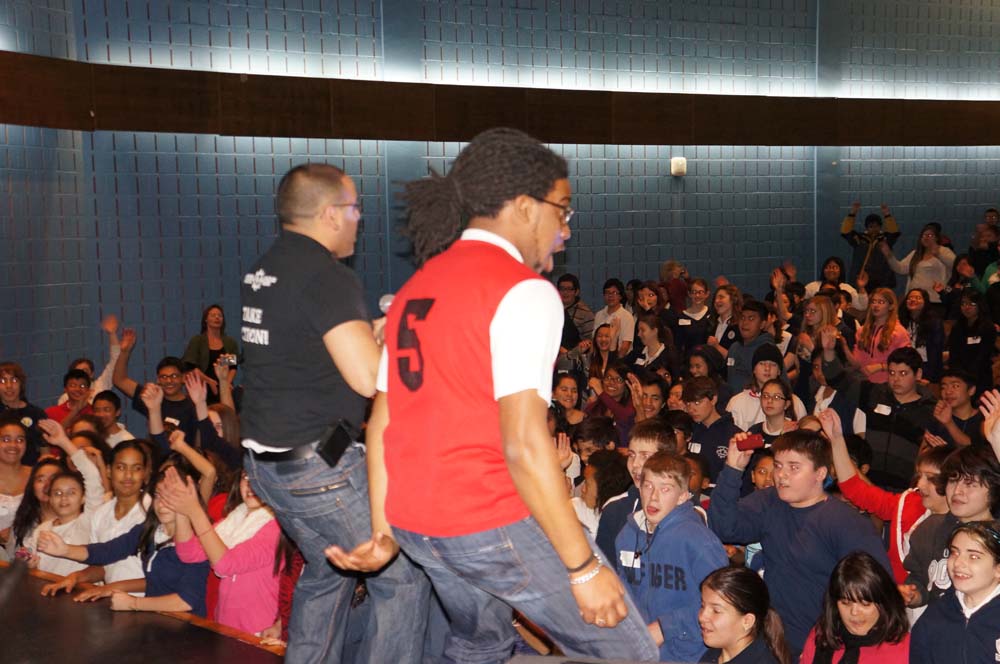 Toronto Public Health – Substance Misuse Prevention – Ayobami Fatola & Sandra DaviesFree the Children – World Map – Taylor Selig & Liliana BeggColour of Poverty, Colour of Change – Why does different mean bad – when diversity is good!? – Michael KerrToronto Public HealthMillennium Kids – Who’s got the stuff? – Sarah HildebrandAcademic AICT (TCDSB) – Power 2.0 Web Tools: Maximize Your Learning for Maximum Results – Mario Addesa & Liane PaixaoTCDSB – Catholic Leadership and Social Justice – Kevin LoboTCDSB Art Department – Boo to Bullies!!! – Leda MilesTCDSB Religion & Family Life – Michelle Peres1Focus – The Glass Elevator – Isabel Ng-Lai & Miranda Dela CruzJohn Maxwell Team – Hold Your Image – Kevin D’SouzaR.I.S.E. Poetry – Reaching Intelligent Souls Everywhere: Spoken Word Motivation 101 – Randell Adjei & Lance BucknorThe Student’s Commission of Canada – Blueprint: Addressing Violence in Women’s Lives – Sharif Mahdy & Angie BradleyPor Amor / PEACE – Using the arts for the spirit, body and mind – Matthew Jones & Tanika RileyMoney Smarts 4 Kids – Give yourself credit – Richard RainfordThe Angel Foundation for Learning – The Leadership Toolbox – Jessica ColucciTEACHER WORKSHOP by EGALE Canada – Safe and Inclusive Communities for LGBT StudentsWe close the day in prayerStudent leader Patrick Parro (St. Michael’s Choir) and Matthew Ennis (OISE) lead us in a powerful and interactive prayer servicePrayer service was a cool mix of modern songs within a religious contextVocalist Justin Bacchus blessed the mic with his powerful voice – “When we sing, we pray twice.”