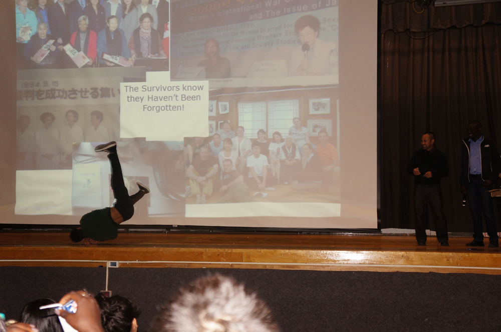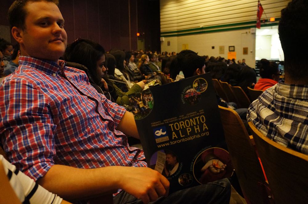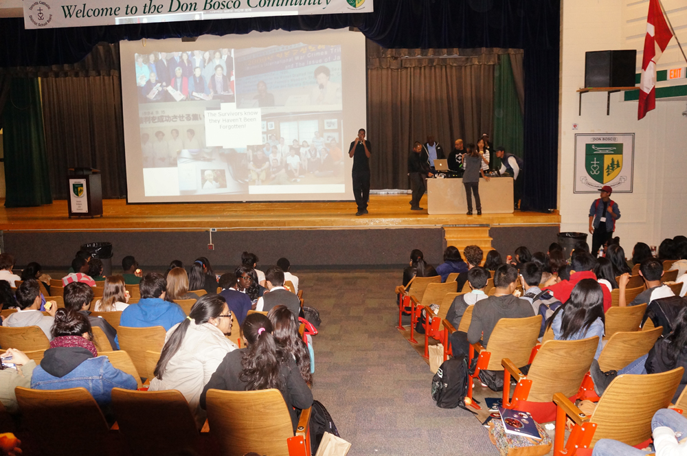 Stefan and Mikey always have fun setting up the DJ booth and multimedia needed for the day.The conference was held at Don Bosco Catholic Secondary School and there were close to 300 students and teachers in attendance.Our awesome MCs, Patrick and Saerom!Toronto ALPHA Executive Director, Flora Chong welcoming everyone to History Meets Humanity.The students launched into watching a 1 hour version of the documentary-drama, Iris Chang: The Rape of Nanking.The film was very interesting and also disturbing, so the students had a chance to debrief and ask questions about it afterward.There were moments in the day to reflect on what we learned…… and a chance to share our feelings, thoughts, questions and action plans collectively.There were breakout sessions covering various topics. This one was about the history of Korean “comfort women.”Margaret Wells presenting her workshop on chemical warfare to the students.“Is Joe fresh?” was one of the questions posed in this workshop about Historical Memory, Ethical Behaviour and Denial.A snapshot from the “Speaking Our Silenced Stories” breakout session reflecting on the Nanking Massacre.During lunch, there was an impromptu talent show. Students from all of the different schools signed up on-the-spot to showcase their gifts…… from spoken word poetry…… to singing …… to dancing…… and rapping!Before the end of the day, the students reflected further on what they learned at the conference.Each student had a Passport for learning.The event closed with a very special prayer led by Matt Ennis (OISE teacher candidate), Theresa Hoang (E-CSLIT Chair)…… and musicians Justin Bacchus and Kristin Fung leading us in song.Thank you student leaders Theresa, Adrian, Karol and Mearah for giving up a day of classes to help run the conference!All of the people who worked behind the scenes to put the conference together are looking forward to next year’s event!