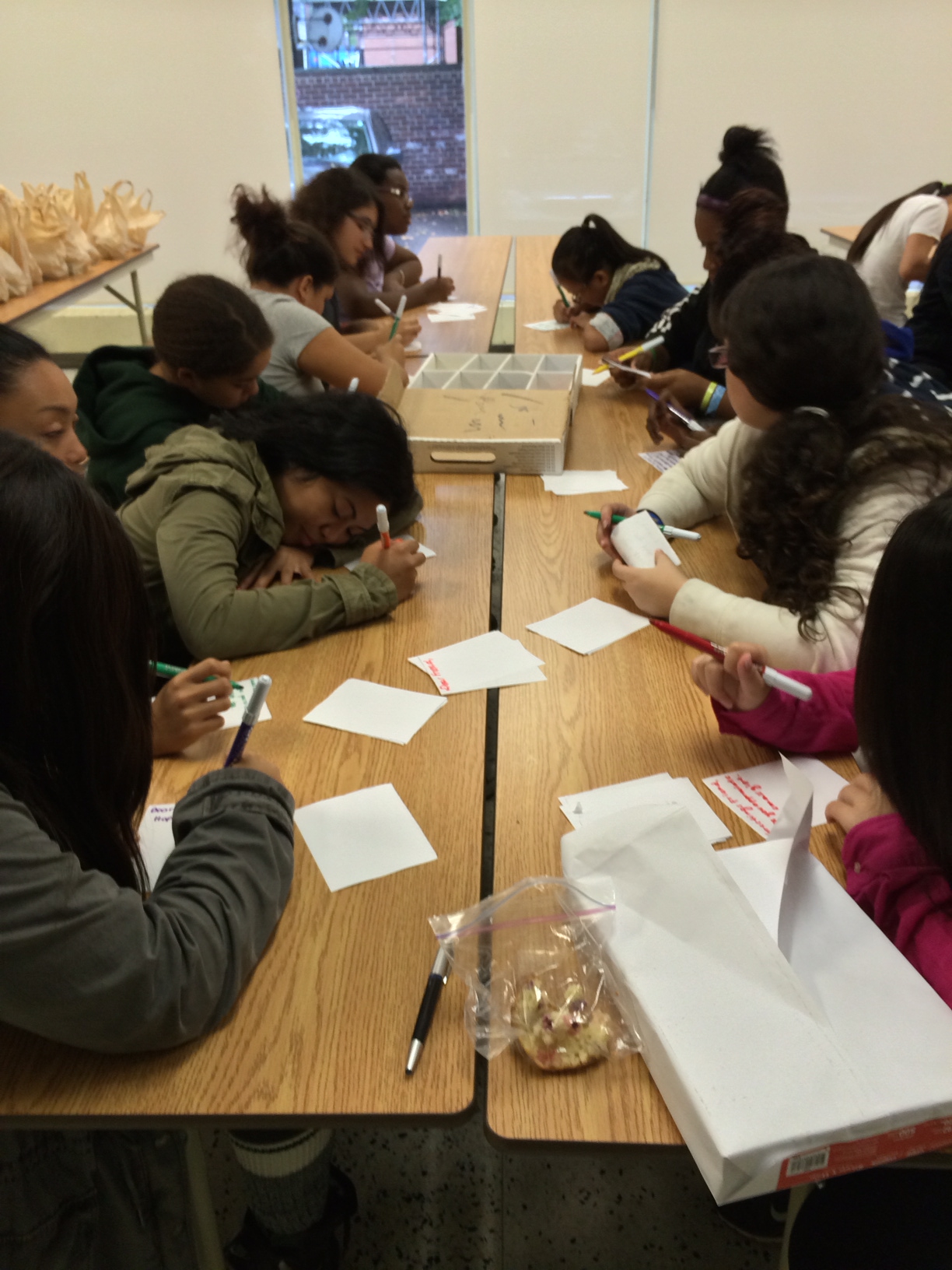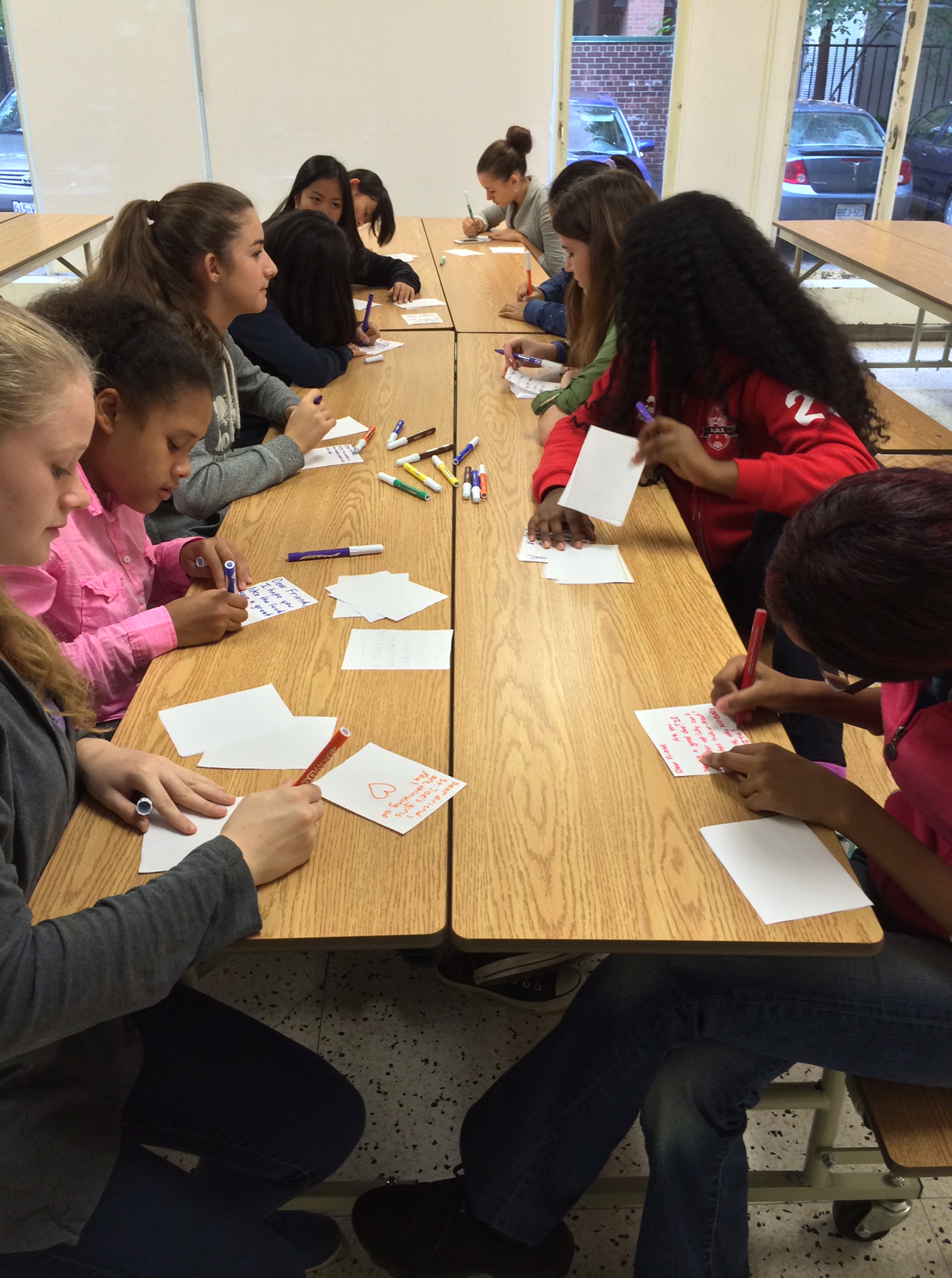 The girls write inspirational quotes and messages.
