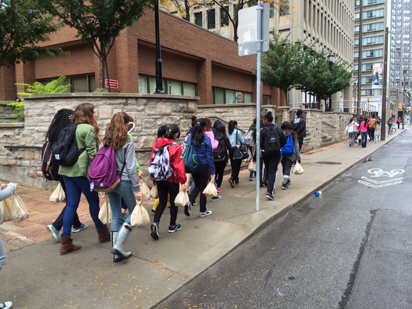 The students went to various organizations like Development and Peace, The Mustard Seed, St. Francis Table to name a few.  One group of girls did a street patrol to hand out sandwiches to the homeless in downtown Toronto.