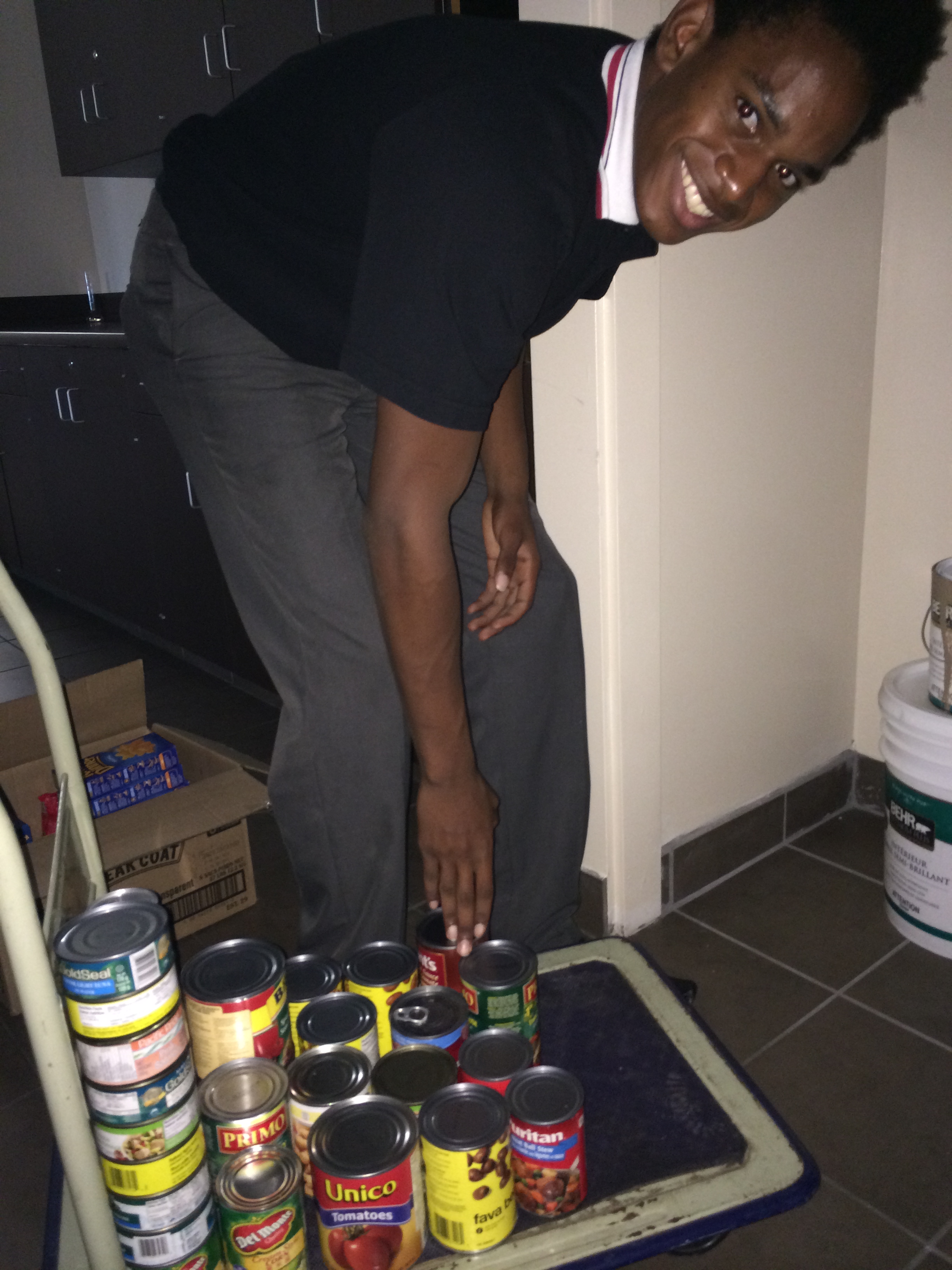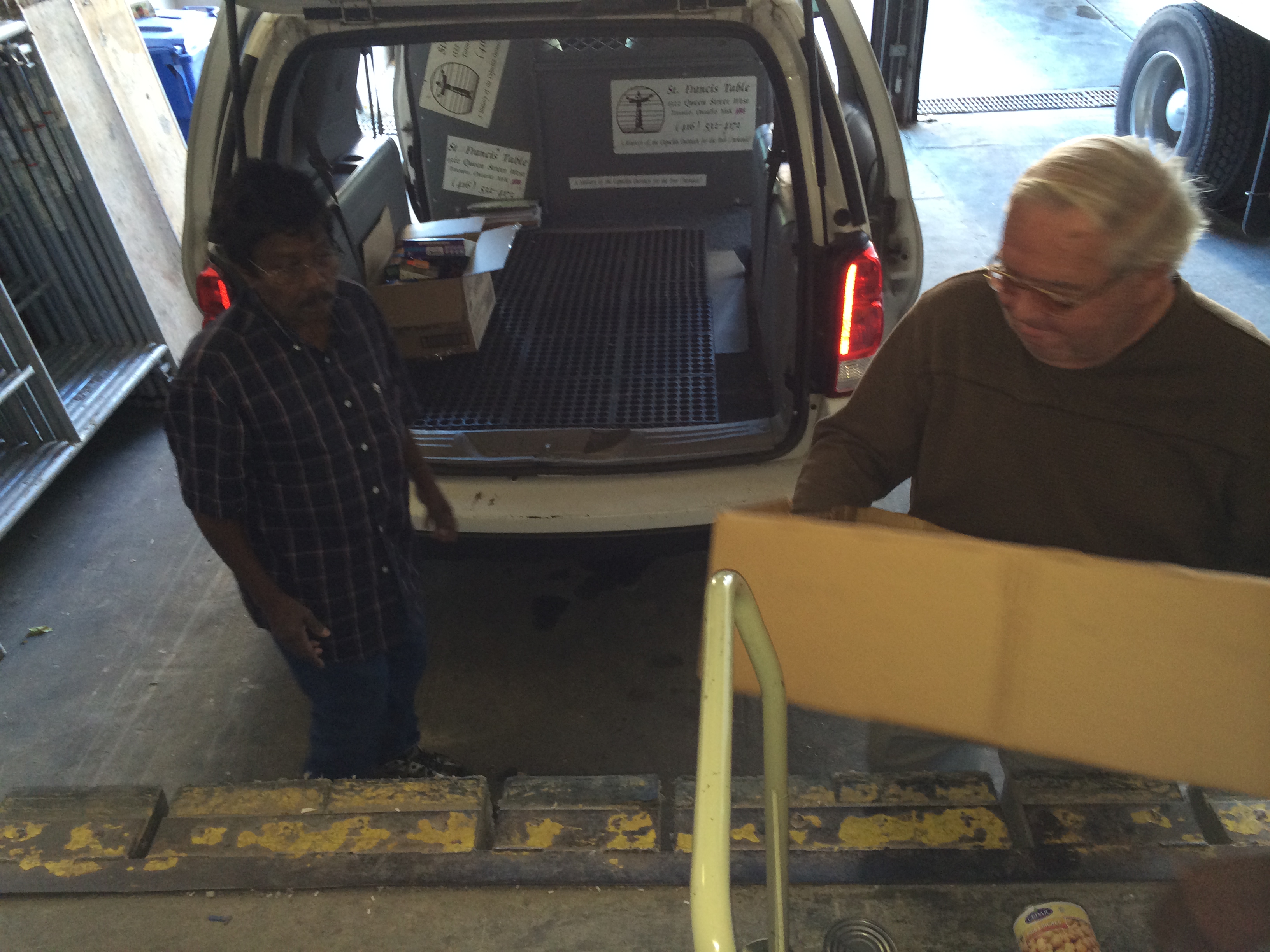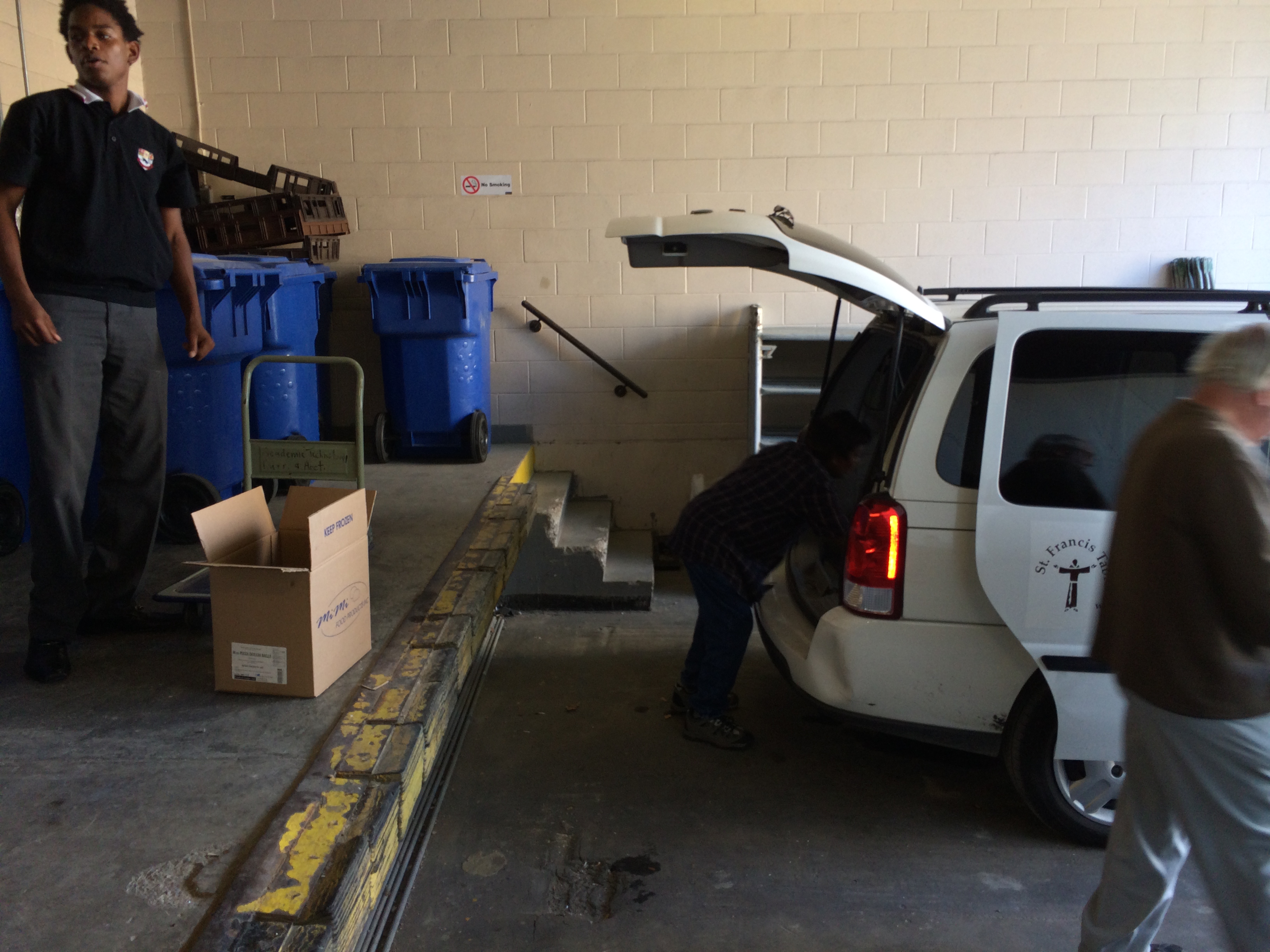 Simeon aka “The Milky Way” unloads the “secret closet” where we stored all the food collected after our E-CSLIT meeting (Thanks Matthew Ennis for packing the closet).Cosimo and Mike help bring all the food to the loading dockIf ever you want to donate, contact St. Francis Table a this numberSimeon looks like he’s sweating from all the work!St. Francis Table staff give their tremendous thanks to E-CSLIT for their amazing generosity
