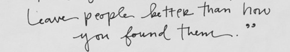 So let’s focus on leaving people better than you found them as we help spread and live out the good news of our saviour Jesus Christ.