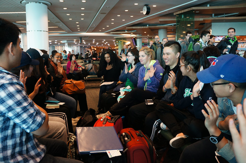 Student leaders and their families met at Toronto Pearson airport at 10:15 am.