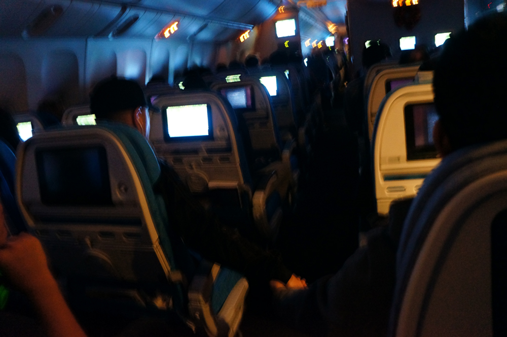 15+ hours, 4 movies, and 2 meals later, the screen shows that we’re almost finally there!