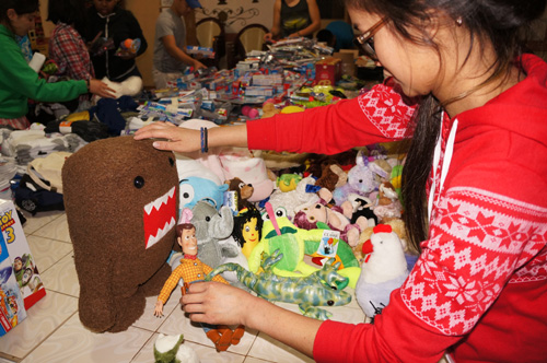 Each student brought 2 pieces of luggage. One for clothes and one with personal gifts and donationsStudent leaders unpack and sort their donationsIt was unbelievable how much stuff we brought overWe had hundreds of toothbrushes and toothpaste thanks to a drive at Danielle’s school (Blessed Mother Teresa – DCDSB), and donations from Colgate-Palmolive (thanks to Merle Gonsalvez for hooking it up)I know “Ball is life” Kat, but those are for brushingWe also had toysVarious stuff animals (if you can call that an animal)We had socks and various types of clothingDifferent games including a wooden hand crafted chess setAnd even letters from elementary students from Danielle’s schoolAnd MORE toys!Now that’s Christmas love! All from TorontoStudent leaders be PROUD! You’re all amazing!
