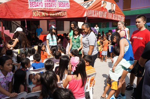 12. This was our first day actually interacting with the kids. I thought it was going to be difficult because of the language barrier but they were so welcoming that it became easy! To see the joy on the kids face when they saw the gifts put a smile on my face. It was difficult to leave them because they were the first set of kids that I bonded with. Dean Mark (my partner in the piggy back race) and Franco was the ones that stood out to me. Everytime I gave them a hug they would laugh and blush. I can definitely say I saw true happiness today.