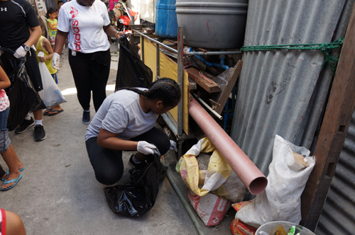 I forgot to put sun screen so my skin started sizzling. The kids were so cute, even thought they didn’t understand what I was saying. Kids helped during the community clean up, although they were not part of the morning session.