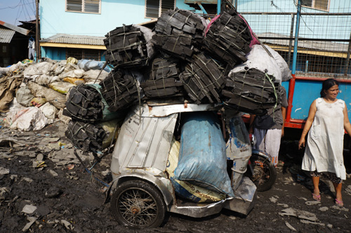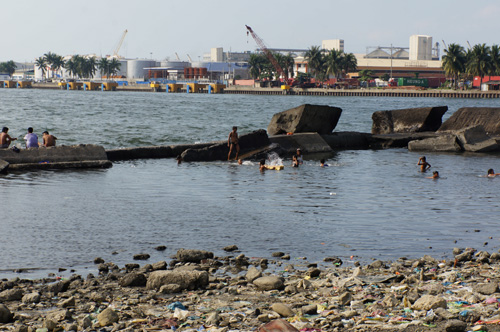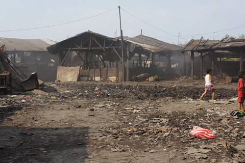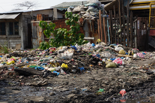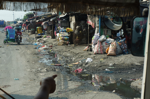 After leaving the orphanage, we hopped back onto the bus for a 10-15 min bus ride.You’ll notice we kidnapped some kids from the orphanage since they were so cuteActually, these kids live in the Smokey Mountain slums so they were hitching a ride back home rather then their usually walk.These kids were going to show us where they lived in the Smokey Mountain slums and be our unofficial guidesThe bus ride alone revealed the poor living conditions in the Tondo (name of city) area as a wholeThis picture was taken from within the bus. There was basically garbage everywhere you lookedWe unload the bus since the driver feared it would get stuck in the mud, so we walked the rest of the wayAgain, we noticed garbage left, right, and centerGarbage was literally everywhereWhile walking through the slums we came across this boy holding 4 coloured chicks as petsThis is their Catholic Church where various services are celebrated. Like the Philippines in general, the majority of the families that live here are CatholicThis is a school house built by a foreign NGO (non-governmental organization)This is what the locals call a tricycle (a form of convenient public travel). It’s basically equivalent to a taxi. This one was loaded of coal to be shipped. It’s amazing how much they can load on one tricycle in one trip.Our guide also pointed out that one of recreational past times here was cock-fighting. These are the cages where they keep the roosters.The make-shift houses were similar to El Dorado but the level of poverty here seemed much higher because their houses were directly next to and on top of a garbage dumpWe always hear about how plastic bags do not decompose, thus the push and emphasis of reusable grocery bags.These are years upon years of accumulated plastic bags that will take an eternity to decomposeThe people who reside here make their living by scouring the incoming garbage that is dumped here, in an attempt to find recyclable materials to be sold The other main source of income is to find reusable wood that can be converted into coalAs we entered this part of the neighbourhood, the smoke started to thickenThere is a big market for coal since it’s the most economical way to create a fire.Since most of houses within this and other slums do not have running water and electricity, coal is often the method by which to cook since it is cheaper than gasWe approached the seasideThis area was once filled with shanties but during a devastating storm a few years ago, the makeshift houses couldn’t compete against the forces of nature. This is what was left behind.With all the garbage around we were shocked that the kids were swimming in the waterConsidering that every time it rains, all the chemicals from the garbage seep into the soil which eventually ends up in the adjacent sea. Thus, it’s highly unlikely that it’s safe to swim in these watersWe had to walk back through the coal production areaIt was difficult to breath, we all had to cover our noses and mouthsIn certain areas the smoke was really thickJust walking by it made us realize how hard it would be to actually live in these conditions on a daily basis. We struggled during the 3 min walk through this section. Imagine having to live there!We couldn’t fathom living in these conditionsIn every community we’ve been to so far, there’s been a basketball court, even here in Smokey MountainWe made our way back to the bus. Throughout the walk we noticed everyone was so welcoming and had big smiles on their faces, especially the kidsThe most heartwarming thing is when a kid you just met surprisingly grabs your hand from behind and starts walking with youWhen I see shots like this, it makes all the work putting this trip together all worth it!
