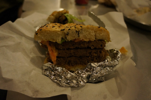 Jeff gets a 3 patty burger that hardly fits in his mouth!