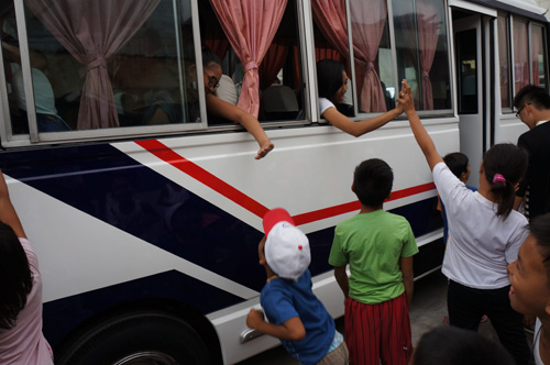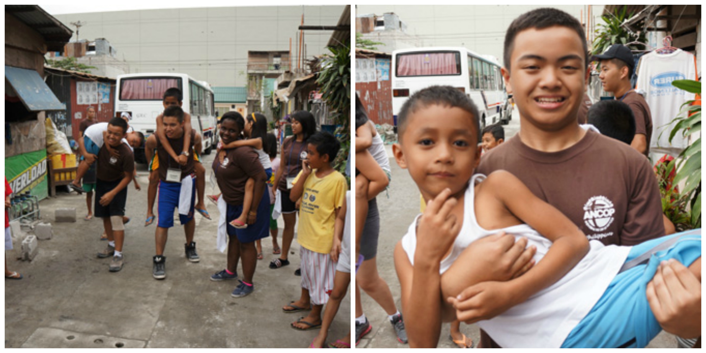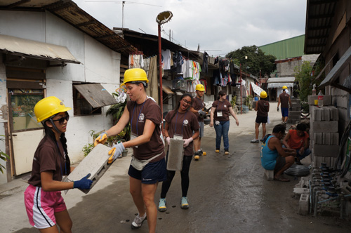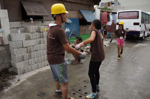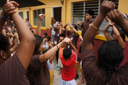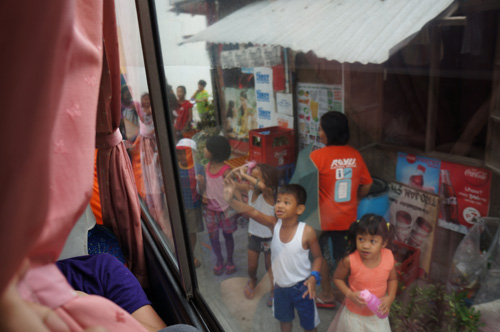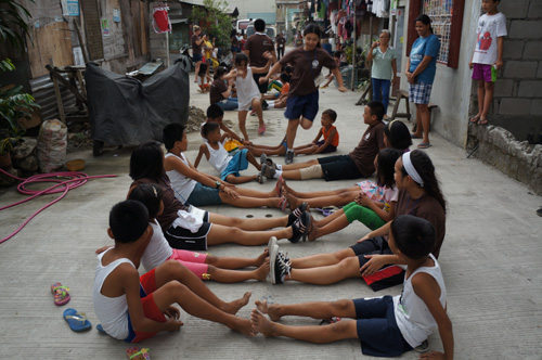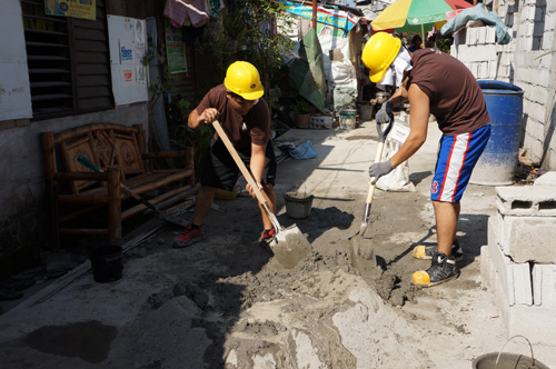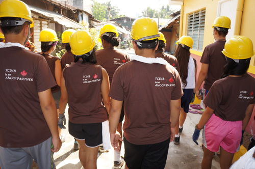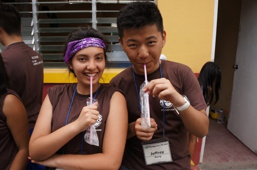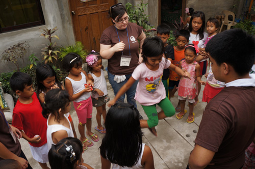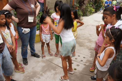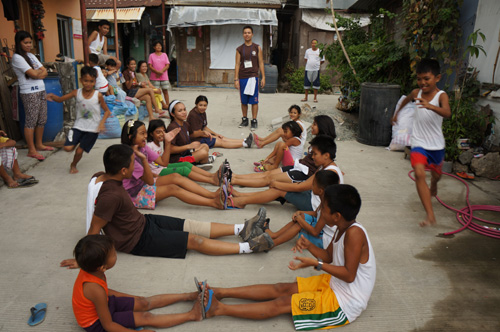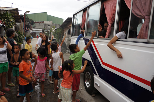 Being greeted by everyone as always as we wave to all the kids that come to meet us 😀The kids are EAGER to see the leaders and teachers!Leaders are giving children high fives as they walk out of the busThe children are excited to be with us another dayWhy are these kids sooooo cute!Melissa, Britishawna, and Katrina posing with their matching 30 hr famine shirtsThe leaders come together for a “mabuhay” cheer before we start buildingMy fellow leaders and I walking to build site, ready to get our BUILD ON!Fierce walking~!Step 1 – Fill bags with sand at the bottom of the hill (make sure they are light enough for Erica to carry) 😀Step 2: Cart sandbags up the hill. Give kids ride when going back down hill to pick up more sand bagsStep 3: Carry sand bags and concrete to mixing areaStep 4: Mix light coloured concrete and dark coloured sand so that it’s one consistent colourStep 5: Make a volcano that can to hold waterStep 6: Add water (and let it cook for a bit – at least that’s how the workers described it to us)Step 7: Mix it all up until it has a consistent smooth textureConcrete mix now ready to be filled into buckets. Student leaders leave their mark in wet cementThese are the original materials that the houses were built fromMy favourite job is pushing the cart up the hill. With kids is even better!This is a picture of me. Doing, umm, yeah…. I don’t know what I’m doingPeace signs from the kidsDanielle and the leaders make cards for our supporters back in Toronto (sponsors, teachers, family, etc).It was a fun process with the children to make all the cardsThese kids were very artisticDanielle is helping them to write and spellThe leaders are doing the same – Alyssa and Alanna would make great teachersDuring lunch Tito Bernie eating exotic Filipino delicacy called balut (Developing shelled duck fetus, boiled, then salted…..yummy) (Yea right!)Katrina leading the passing line for hollow blocksDon’t drop that thun thun thun ehhh~~Nicole solo carrying a hollow brickThis is me multi-tasking. Praying that I don’t drop anythingBritish doing some fancy block stackingHot potato pass it on~Jay reaching to send the hollow block (working off that pandesal)Kyla-anne posing with some kids who are getting ready to go to schoolUniforms are so cute – afternoon school shift is from noon to 6pmJay carrying one of the construction workers up the cliff and sweating like crazyDo you like my banana earrings. Jay don’t be jealous 😉Welcome to the gun show – Fierce!Now flex even harder boys!Grace before meals as always – food looks deliciousThe children teach us the jumping rope gameJairuz gives it a tryStarting off low and easyBring it up a bit!Waist level? How high can you go?The kids are so good at this game!Alyssa is the expert among the group of leadersMichael joins in on the action!Lindsay gets a special gift from one of the childrenThis is Ryzza – everyone just loves her!Jay bending to pick up a hair tie during Filipino style hopscotchHe’s off againJay using his crazy hopscotch skillsErica shows her own skills in hopscotchIn the Philippines you can order pop, but instead of it being poured in a cup, they serve it in a bagDanielle takes a picture with this adorable childKyla-anne is invited into one of the homes as she plays with the kidsAfter our lunch break, we teach “I Gotta Feeling” dance to the childrenI gotta a feeling~Wooo-ho0o!That tonight’s going to be a good nightStep, 2, 3, Clap!Meanwhile during our dancingDuring this part of the dance, everyone picks their own pose. Jay flashes his pandasel (his nickname for his stomach). He thought that we wouldn’t get a picture of it but Mike is fast with his camera.Danielle hugging Joshua, the child she has decided to sponsorTime for some piggy back races. Nicole, Kyla and Jeff are up first. The winner is……NicoleNext up, Mark, Joe and British. Marc Anthony is the victorShea, Alyssa and Alanna are up next. Alyssa comes out as the winnerThe last group is Mike, Kat, and Mel……Melissa is victoriousSenator Tobias Enverga and his family with MikeSenator Tobias Enverga was a former school board Trustee in ScarboroughSenator Enverga is the first Filipino to hold the position of Senator in CanadaSenator Enverga “looks up”Next game we play is Buggies UpThis is what “Buggies Under’ looks likeKyla-Anne doing her best to lift Melissa. Hang in there Melissa~Last to “Buggie Up” is eliminatedNext game: snakes and laddersKids race to see who gets back to their seats firstTeam 1 on the left gets the pointShaelyn in the leadNext game: Pass the Pisil (aka Squeeze)First to high-five Jairuz wins a point for their teamNext game: back to back sitMark and Katrina partner upAnd so do Nicole and IFirst to get up on the count of 3 winsOne……two…………THREE“Are you two cheating?”Mike points at the winnersSenator Enverga gets involved in the next gameObject, try to grab the person’s finger with your left hand and at the same time try to avoid being caught with your rightOnly move your hands when we say the word “canin” (rice in Tagalog)Alyssa tells a story, “There once was a boy named Mike, and his favourite food was canin.” (Move finger, and close hand)Last group shot before Senator Enverga departsNext, Lindsay leads us in a repeat after me song (as it starts to rain)Danielle is up next and teaches everyone the “Boom, chicka, boom” song. This is how it’s done under waterThis is robot styleErica teaches the song, Down by the bayTime for snack before we depart for the day….Pandesal of course and hot cornBefore we leave, Danielle gets a special giftThis is what’s written at the back of the pictureHardhats lined up for tomorrow and we’re ready to goLindsay takes one of her 100 daily photos before we leaveOur customary escort as we walk back to the busKids are with us every step of the waySome even ask for a piggy backFinal high-fives as we say goodbye for the dayThey make us not want to le