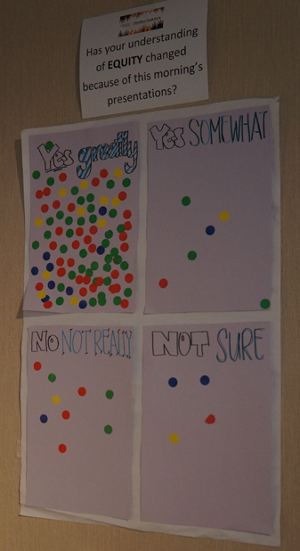 Using Padlet again, we asked students to redefine “What is equity?” but this time, withing their school groups.  See all of their answers and how they changed based upon the morning’s presentation (below are some examples).