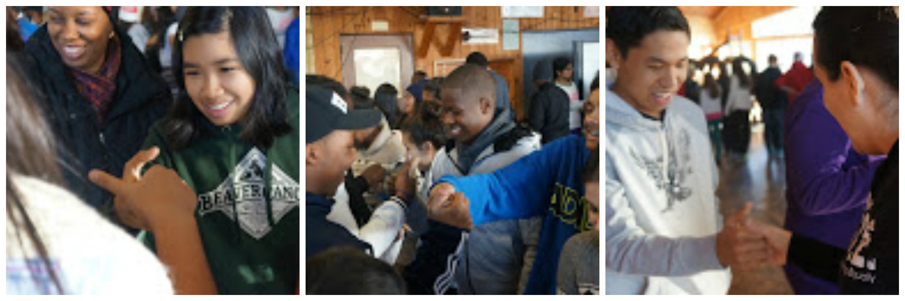We finally arrive at Camp George! Everyone is excited to get off the bus to start this leadership experience!Students get off the bus with their suitcases.Mike explains to everyone that “What you put into it, is what you get out of it”. If you put our best self into something, you will get the most out of it.Students, teachers, facilitators, mentors, and police officers all join in an icebreaker called “I am, I love, I hate, and I dream”.Now it’s time to challenge your partner to a Thumb War!!After, everyone had to create an awesome dance routine with their partner!Brave volunteers presenting their awesome dance routine in front of everyone. Great moves!A behind the scenes look: Mike has a meeting with the high school mentors!