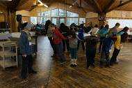 Students participate in an activity called “Trust Walk”. The students learn how to trust and communicate with each other to avoid obstacles.
