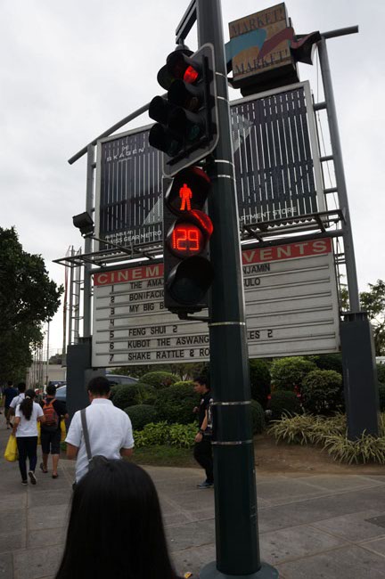 Notice how long the walk sign countdown is…129. We are off to a new mall called Market Market which is across the street.