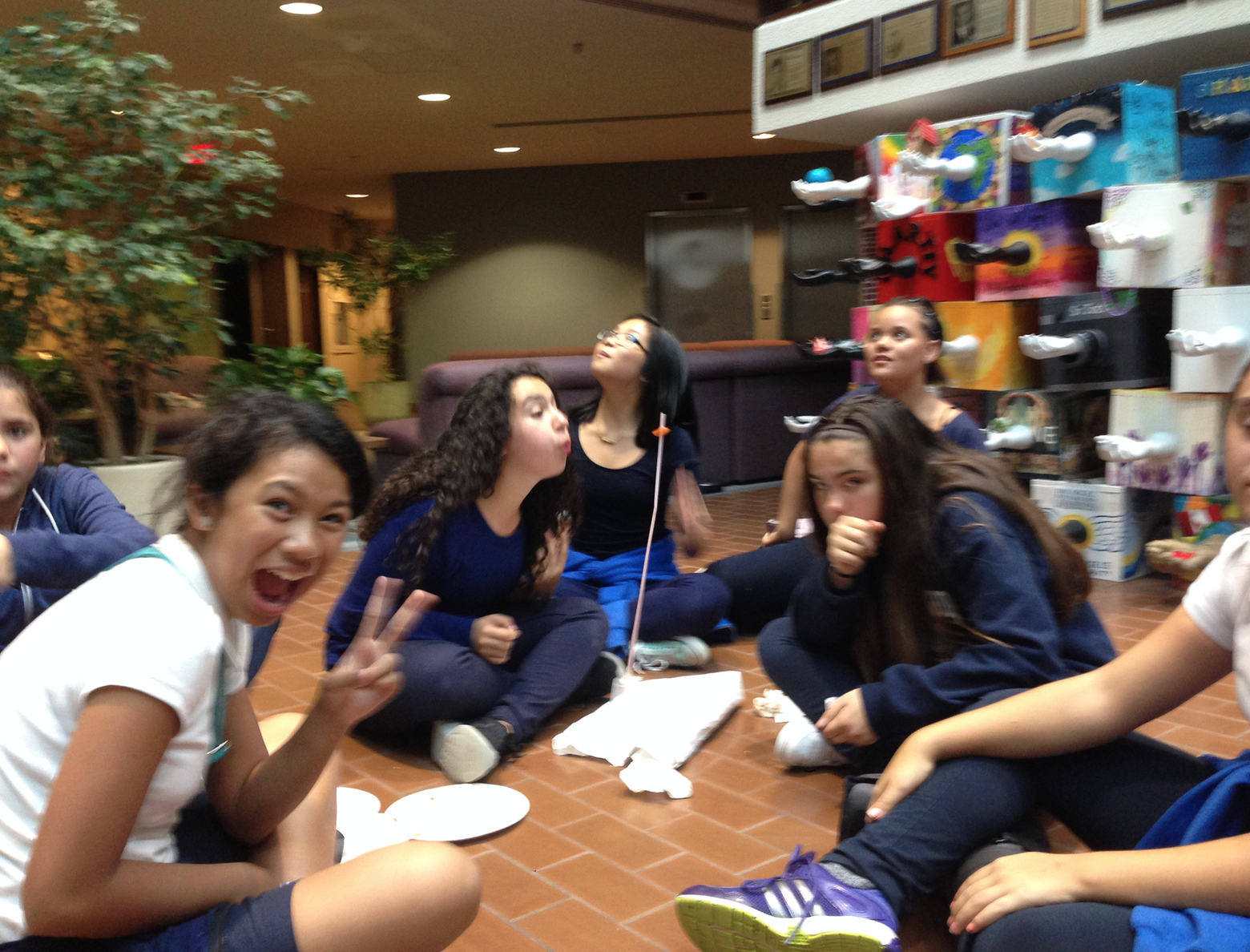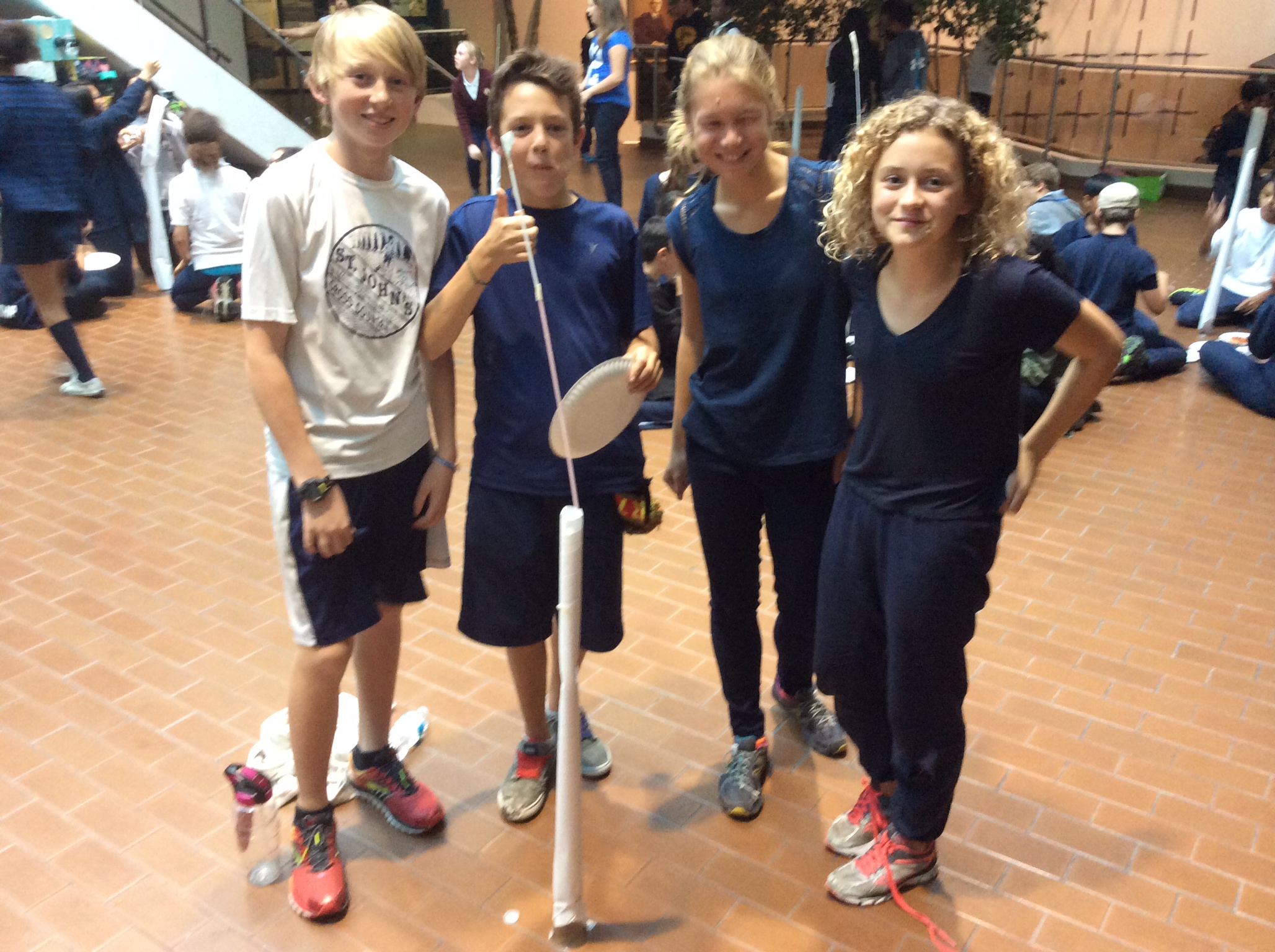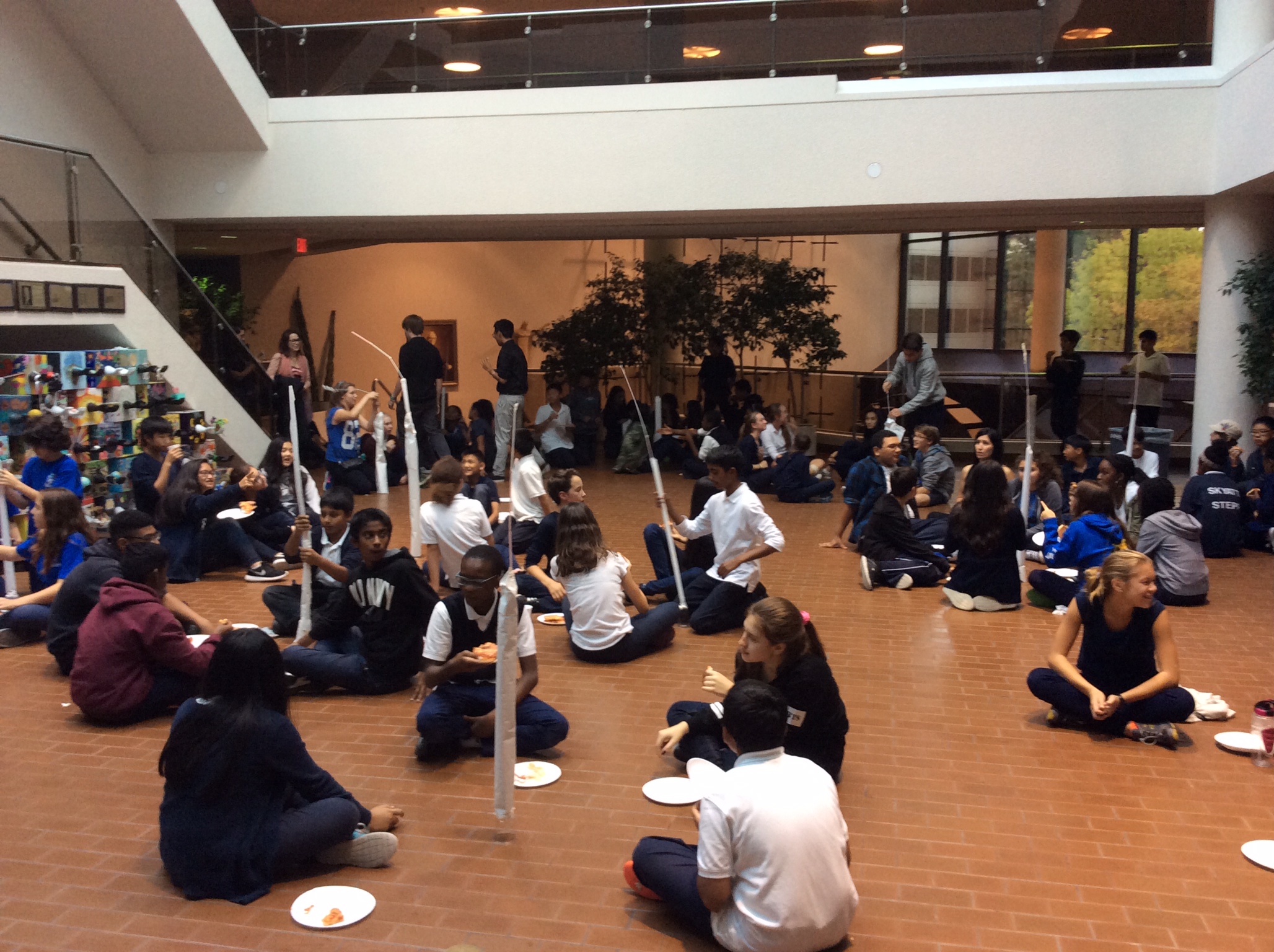While eating pizza, schools were challenged to build the tallest tower with only a piece of chart paper, a piece of tape, a cup and three straws. Everyone was very creative in using their equipment to make their towers, or as some people called theirs “The leaning Tower of Pizza.”