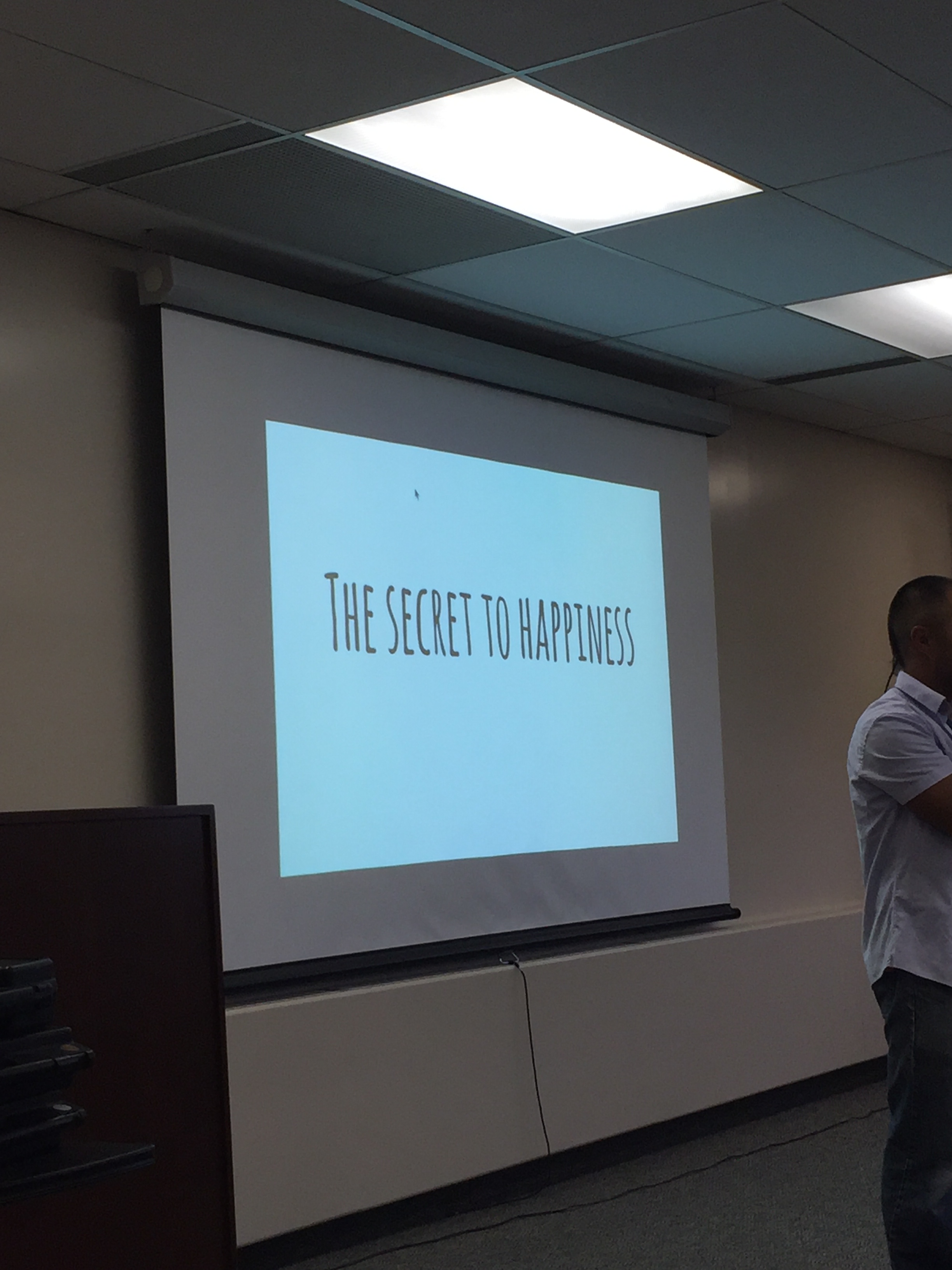 It was awesome the people were very nice and we learned a lot of stuff like the secret of happiness-attitude of gratitude