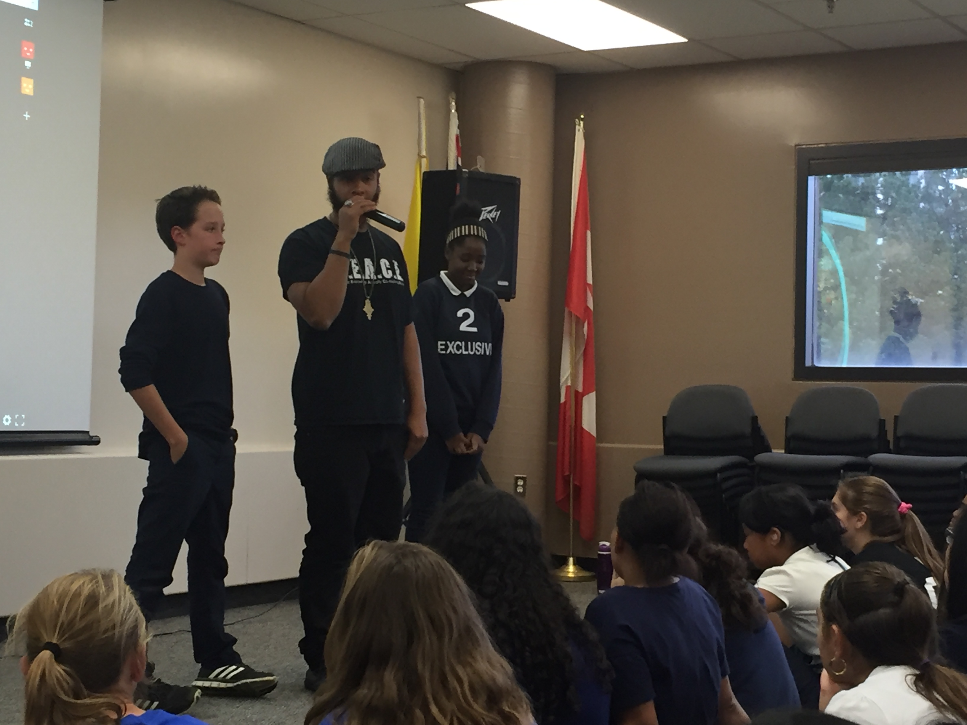 Matthew, aka Testament ,spread an important message about P.E.A.C.E (People Everywhere Actually Coexisting Equally). He made an impressive freestyle rap on the spot, incorporating the virtue of gratitude, attitude, Blue Jays (#ComeTogether) and bananas!