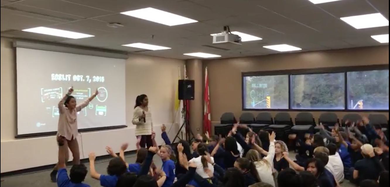 Our new Director’s of Elementary Affairs, Meghan and Priscilla, getting the students hyped up!!!