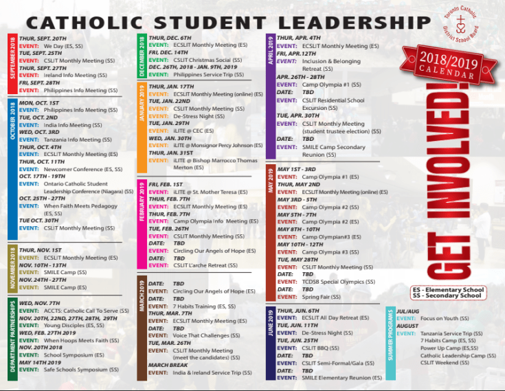 Catholic Student Leadership Calendar of Events! – GET INVOLVED!!