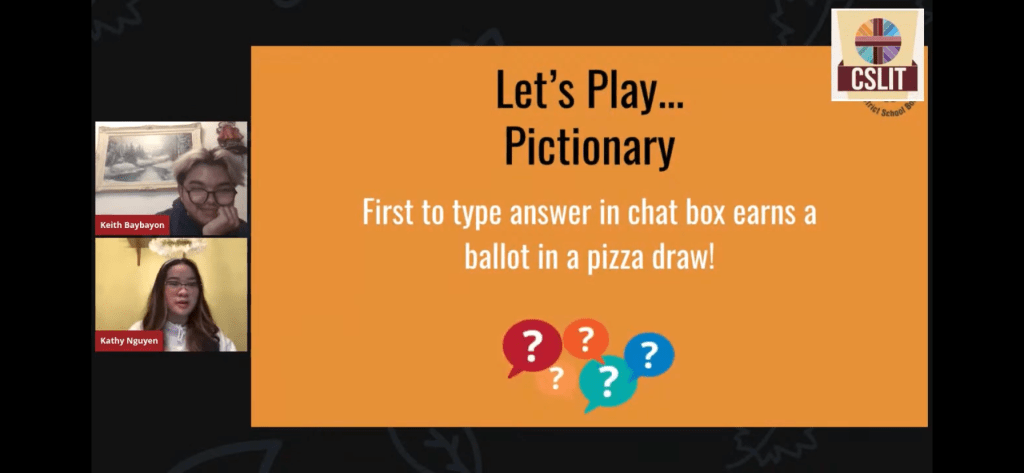 In the chat box, the audience completed various statements like….”My favourite part of CSLIT is…..” or “My first Catholic Student Leadership event was….” If was interesting to read everyone’s responses.