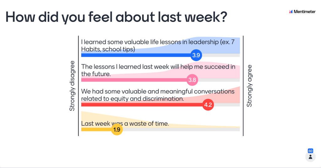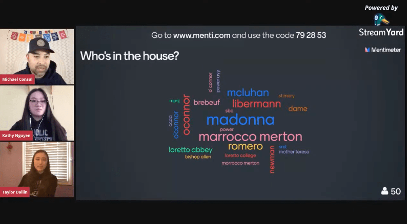 During our monthly CSLIT meetings, we have students type in their school name to generate a word cloud. The school with the most attendees shows up as the biggest name in the middle.