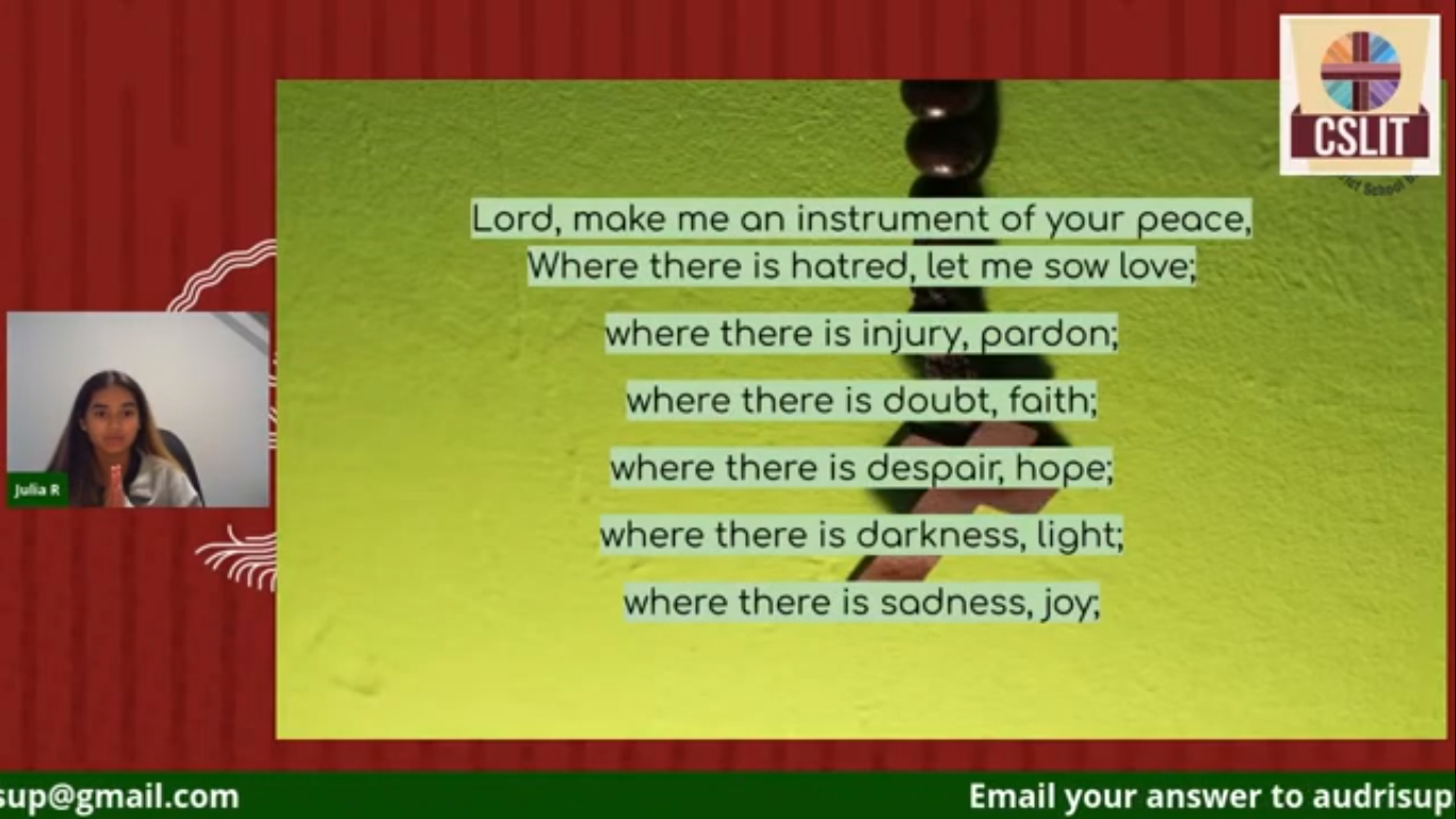 Julia the CSLIT Faith Rep, led our closing prayer before we ended the meeting.