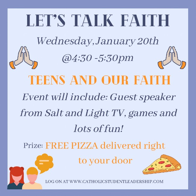 Let’s Talk Faith is a fun place where students can participate in spiritual nourishment and conversation! We have games, guest speakers, and a a chance to win a PIZZA PRIZE DELIVERED TO YOUR DOOR.