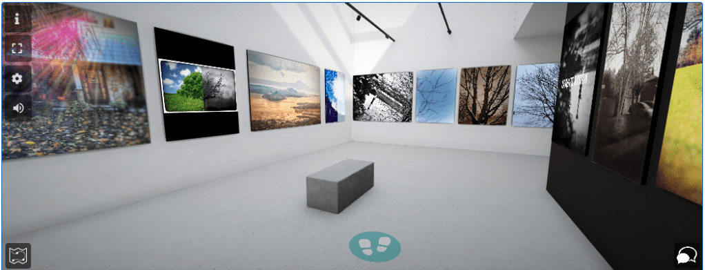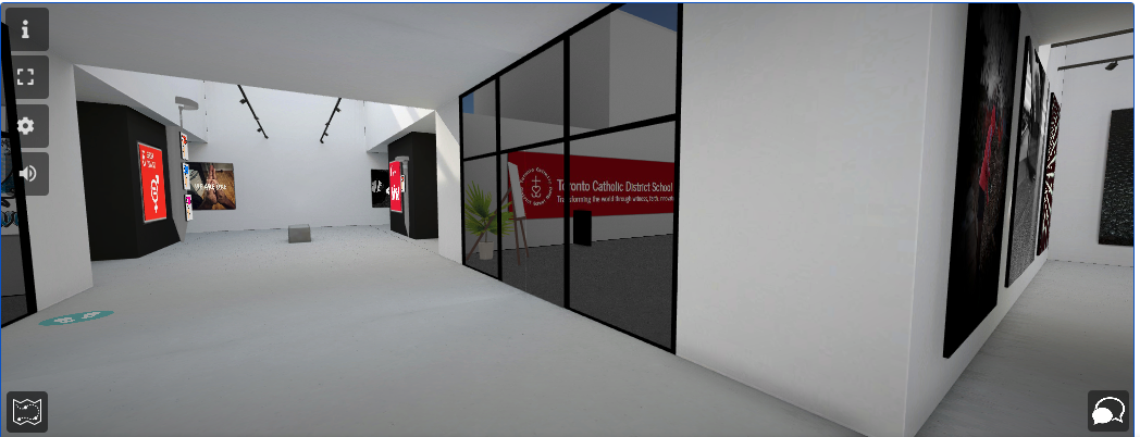 Within this virtual space, students, staff, family, and friends can admire the work these awesome students produced by freely walking around this virtual space and interacting with each piece displayed on the wall.