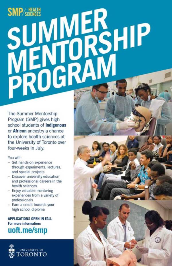 SMP is offering students with African and Indigenous roots an opportunity to explore the health sciences field over a four week course in July. Students must be 16 by June 30, 2018 to be eligible to apply. Transcripts/ credit counseling summaries will be needed for application. March 23, 2018 – Application deadline March 26, 2018... Continue Reading →