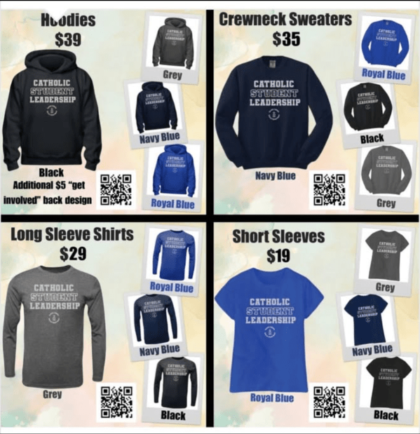 Order your own Catholic Student Leadership apparel by filling out the form below. All proceeds will go towards the Angel Foundation for Learning! ORDER DEADLINE: TUESDAY, APRIL 7RECEIVE IN MAY, 2026 Represent Catholic Student Leadership wherever you go! ORDER NOW ORDER NOW ORDER NOW