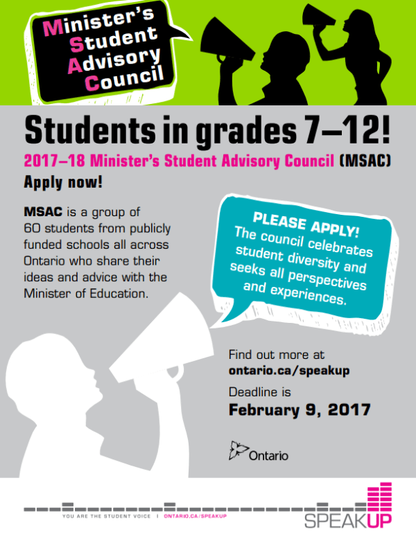 Apply Today: MSAC – Minister’s Student Advisory Council
